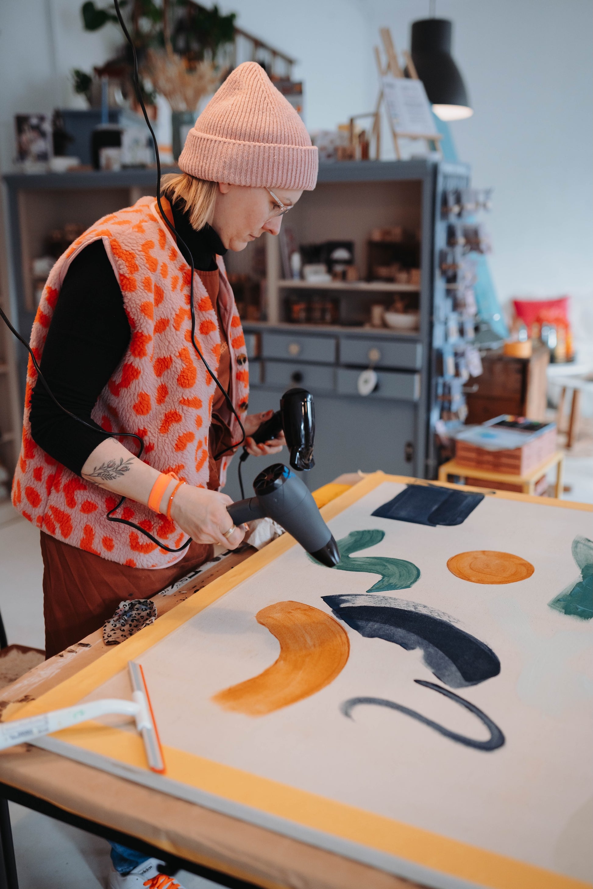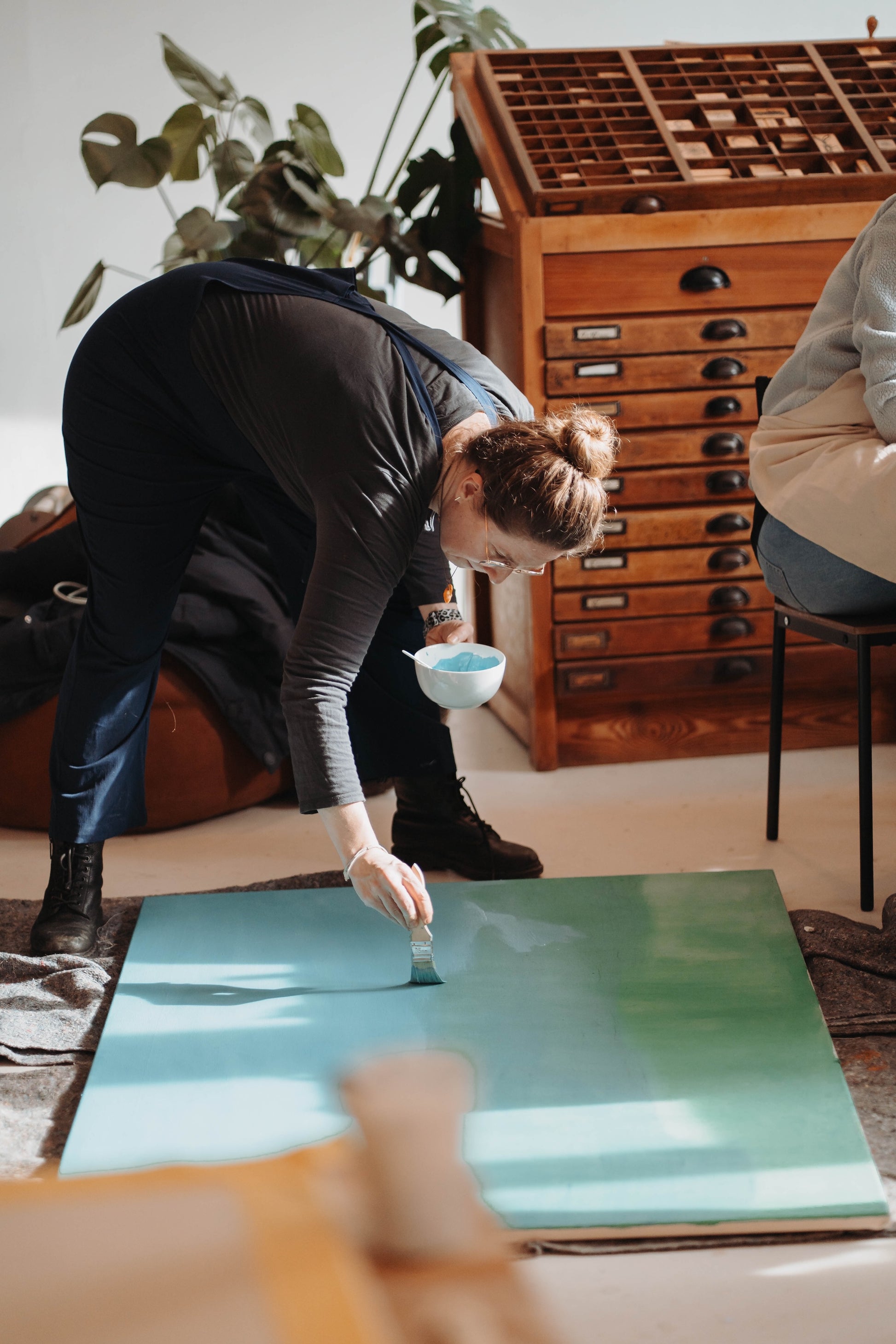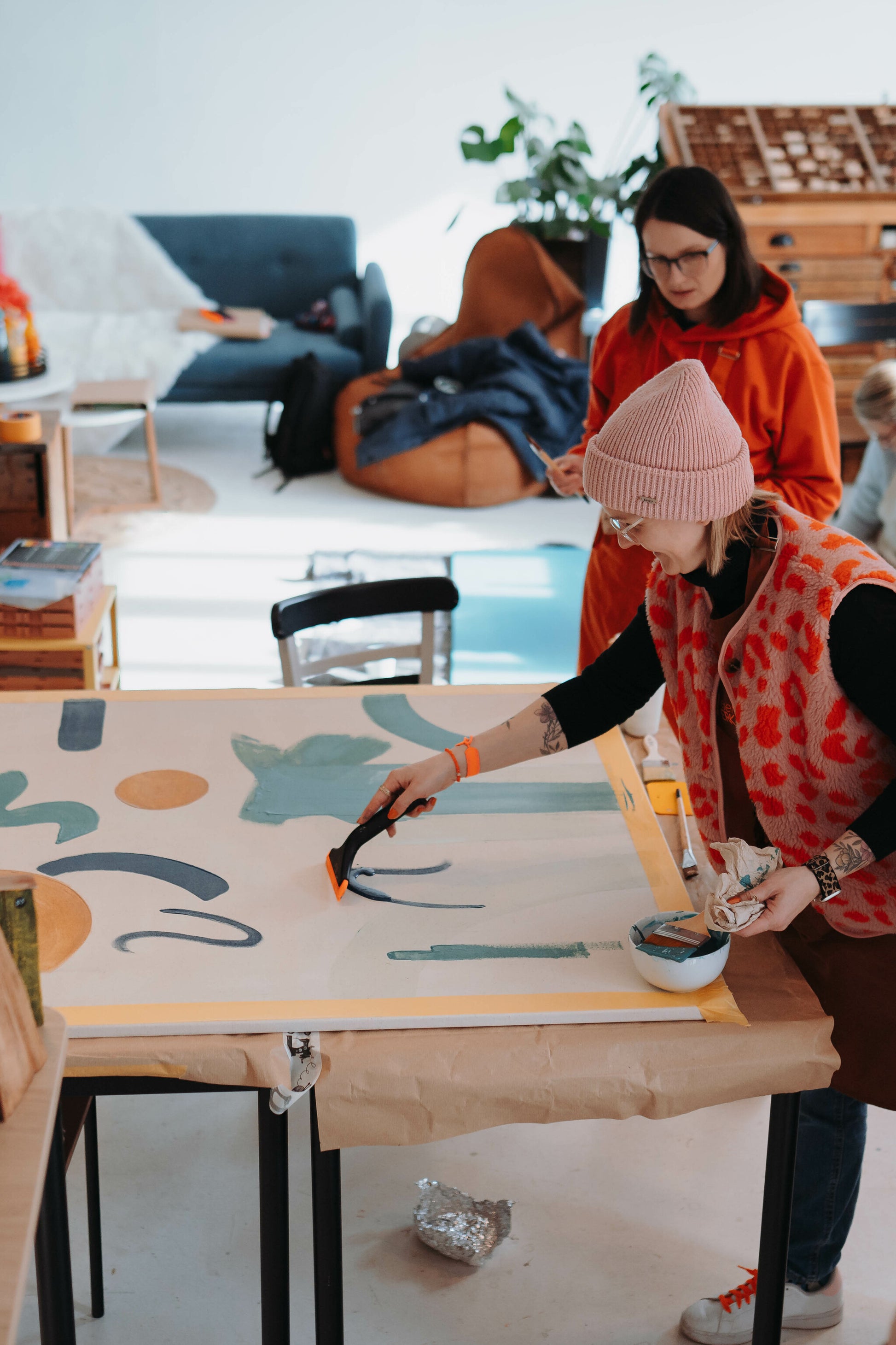 Tag 2, Samstag 09:00 - 14:30 Uhr: Wir gestalten die Leinwand anhand verschiedenster Techniken. Wir begleiten Euch bei der Motivwahl, Mischtechniken, Drucktechniken UND das Highlight - wir arbeiten mit Farbpigmenten und zeigen Euch wie ihr Eure Farben selber anrühren könnt und zwar so, wie sie Euch gefallen.